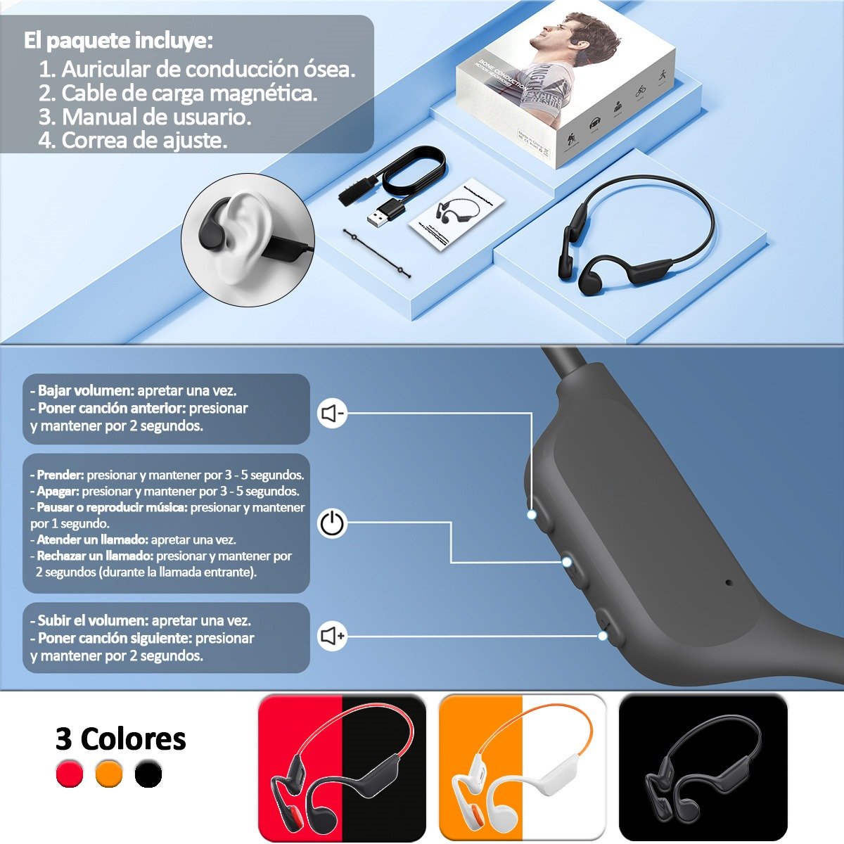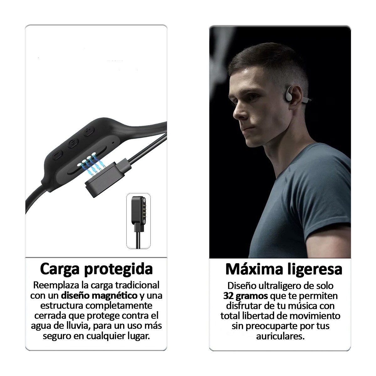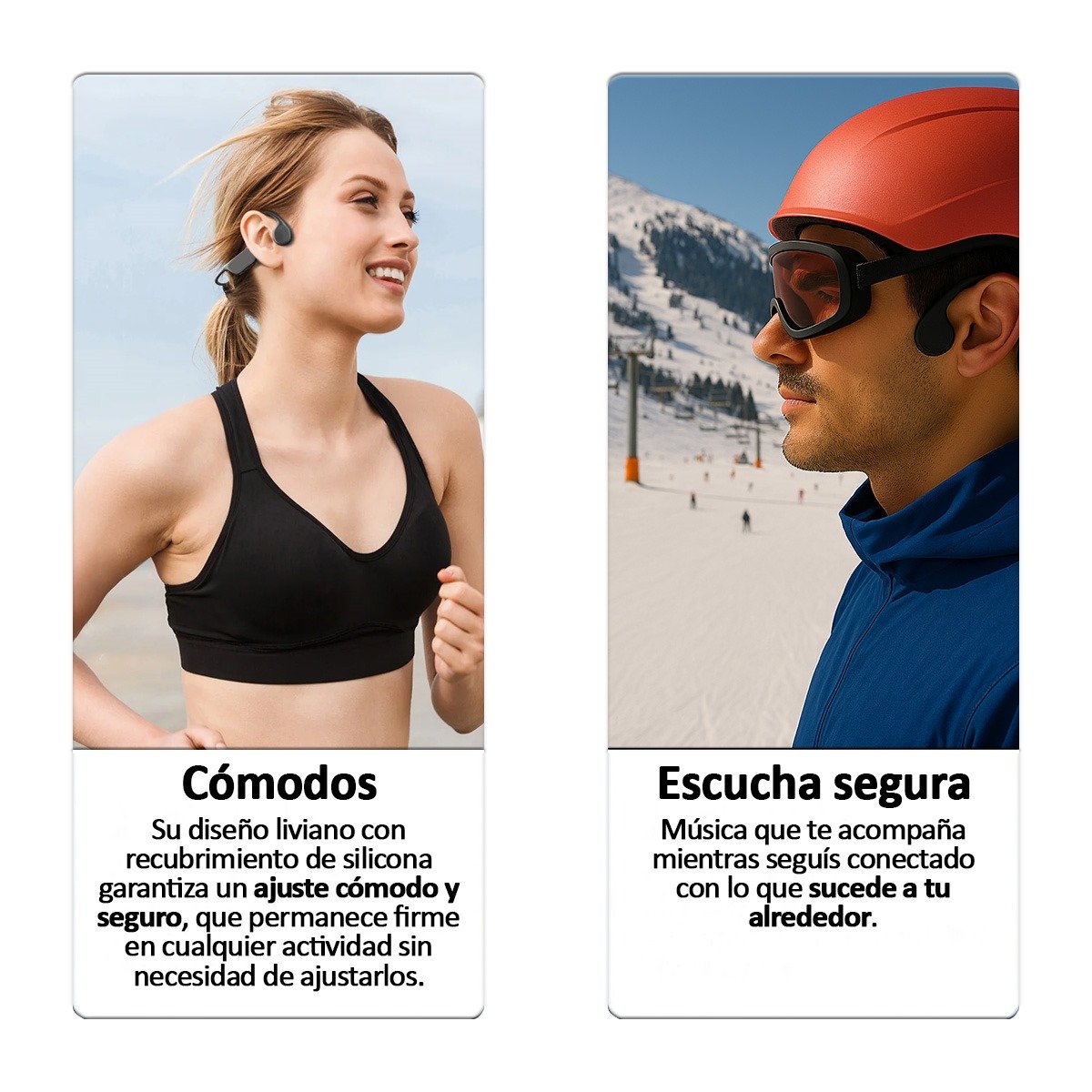 Descubrí una nueva forma de escuchar música mientras entrenás, nadás o disfrutás de actividades al aire libre. Nuestros auriculares deportivos de conducción ósea están diseñados para ofrecerte comodidad, calidad de sonido y resistencia total, incluso en los escenarios más desafiantes.