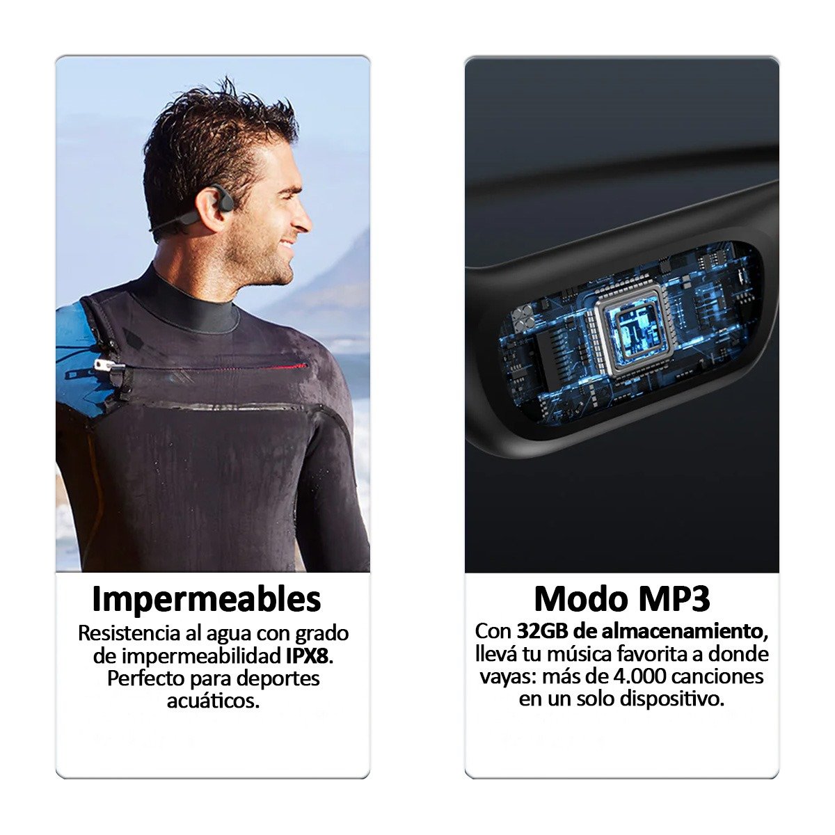 Auriculares de Conducción Ósea Impermeables – Llevá tu música a cada entrenamiento con modo MP3 de 32 GB, Bluetooth 5.4 y resistencia IP68. Cómodos, livianos y pensados para correr, nadar o entrenar sin límites.