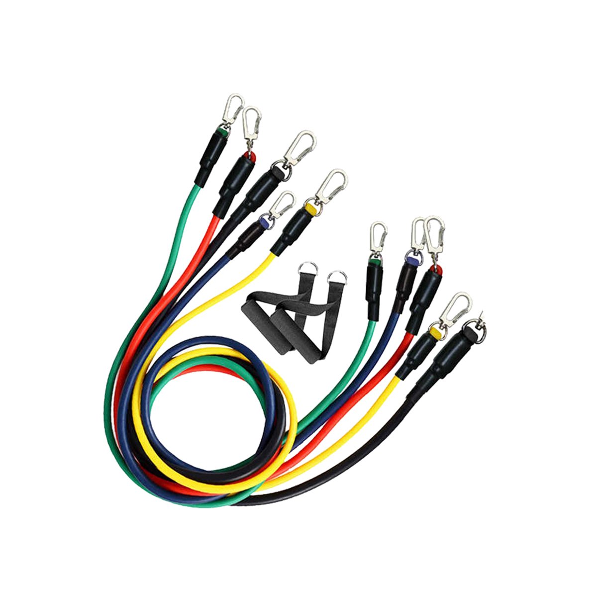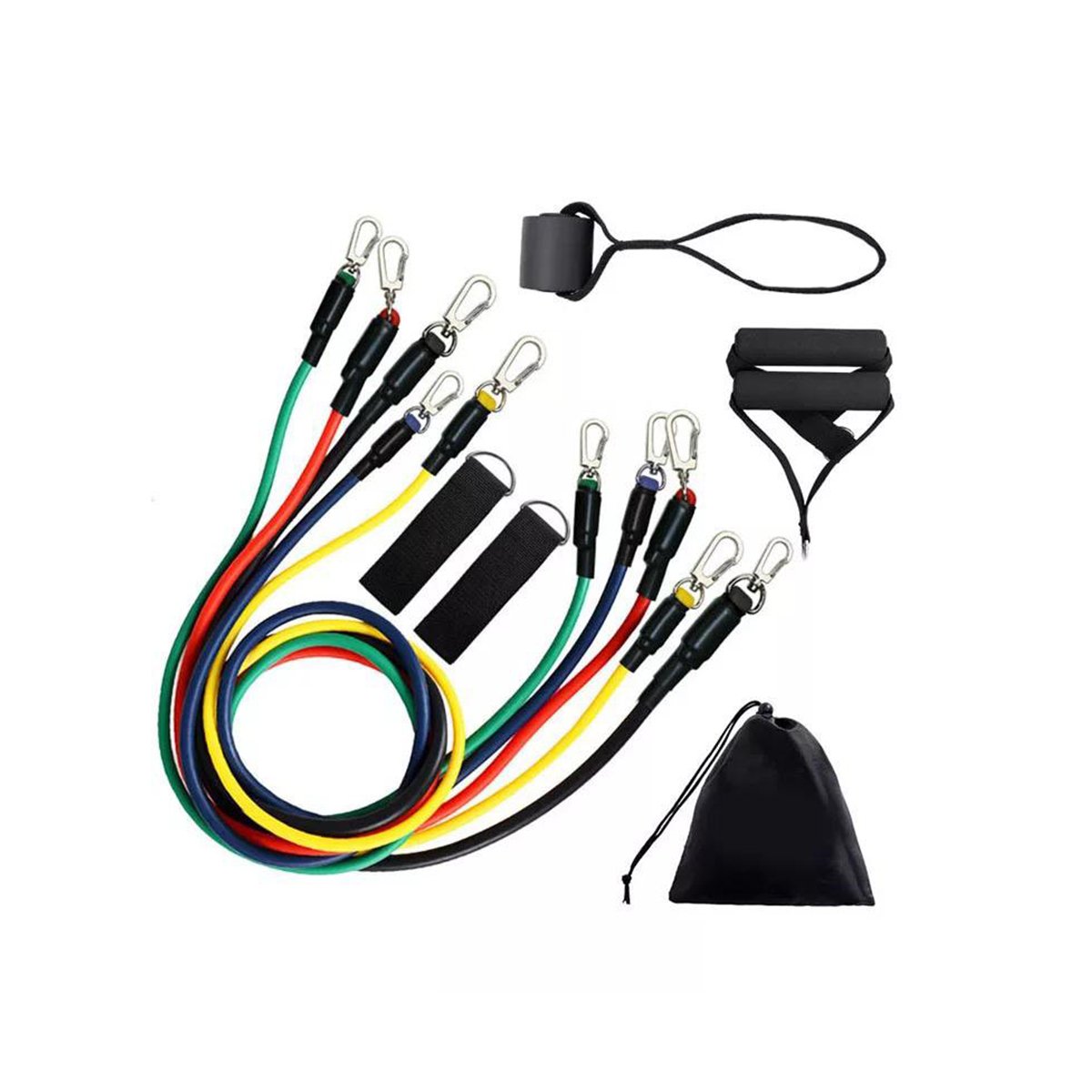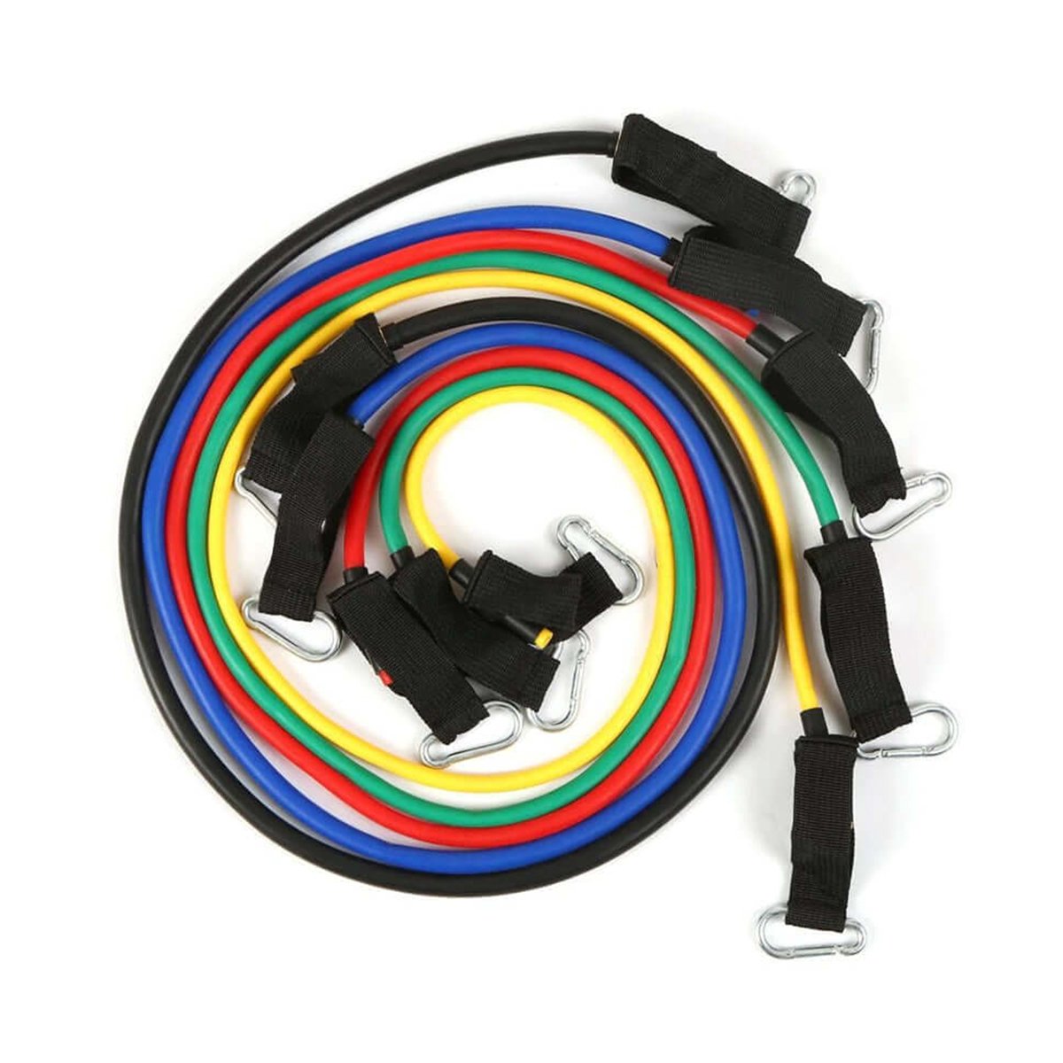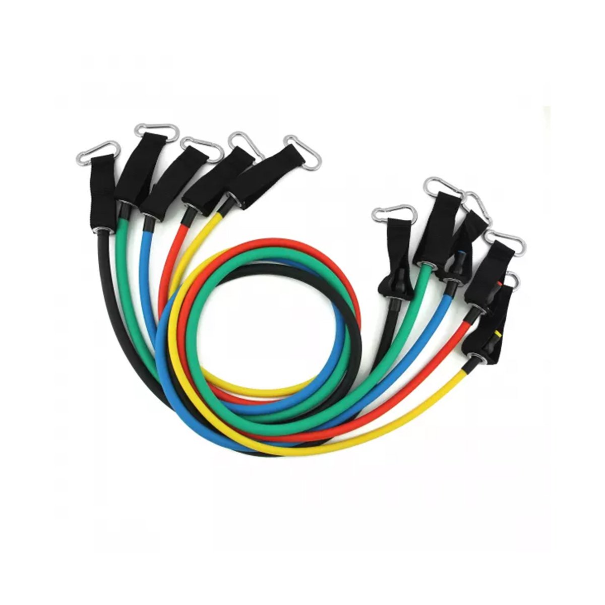 Este set es un kit completo de entrenamiento con 5 bandas elásticas tubulares de diferentes niveles de resistencia, ideal para ejercitar todo el cuerpo en casa, en el gimnasio o de viaje. Está pensado tanto para fitness general como para yoga, pilates, rehabilitación y trabajo de fuerza.